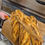 Vår baguette jäser länge och innehåller både vetesurdeg och lite jäst. Den är mjuk och seg inuti men har en krispig yta. Ett klassiskt bröd som passar bra till smörgåsar, till soppan eller som tillbehör till maten. ”Den godaste baguetten jag har ätit” har vi hört från flera kunder.